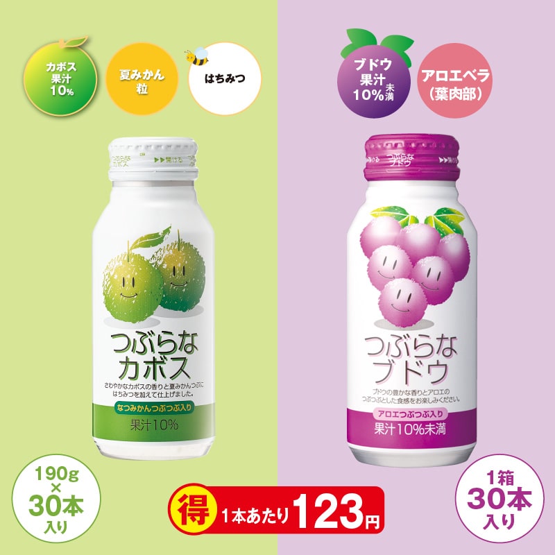 ●商品内容/つぶらなカボス・つぶらなブドウ 各190g×30