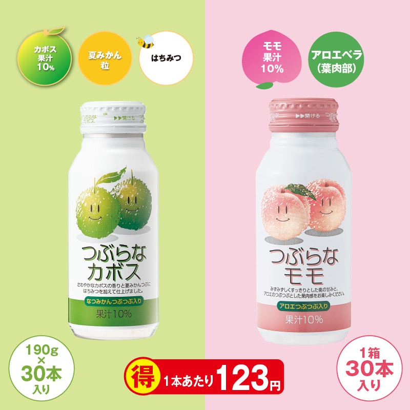 ●商品内容/つぶらなカボス・つぶらなモモ 各190g×30