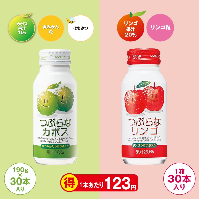 ●商品内容/つぶらなカボス・つぶらなリンゴ 各190g×30