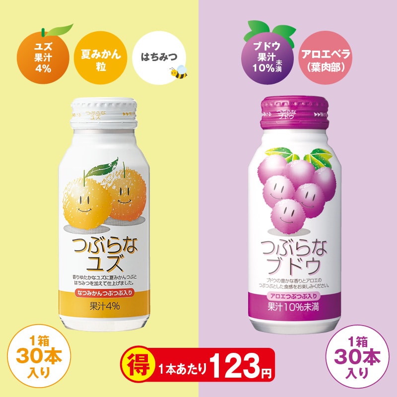 ●商品内容/つぶらなユズ・つぶらなブドウ 各190g×30