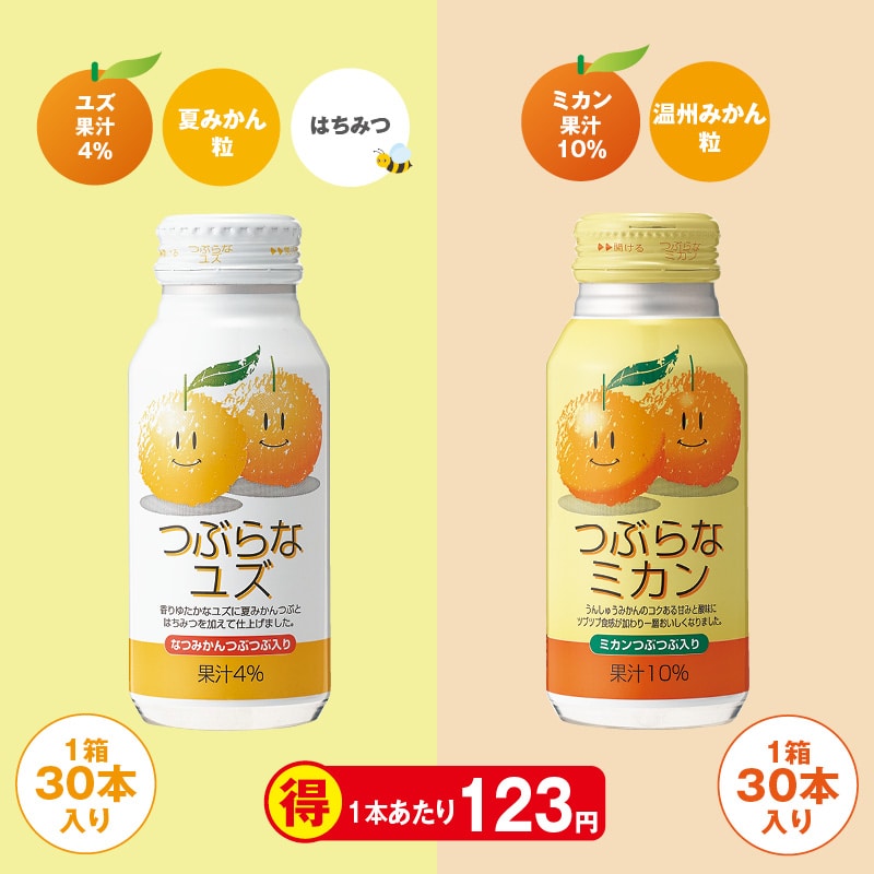 ●商品内容/つぶらなユズ・つぶらなミカン 各190g×30