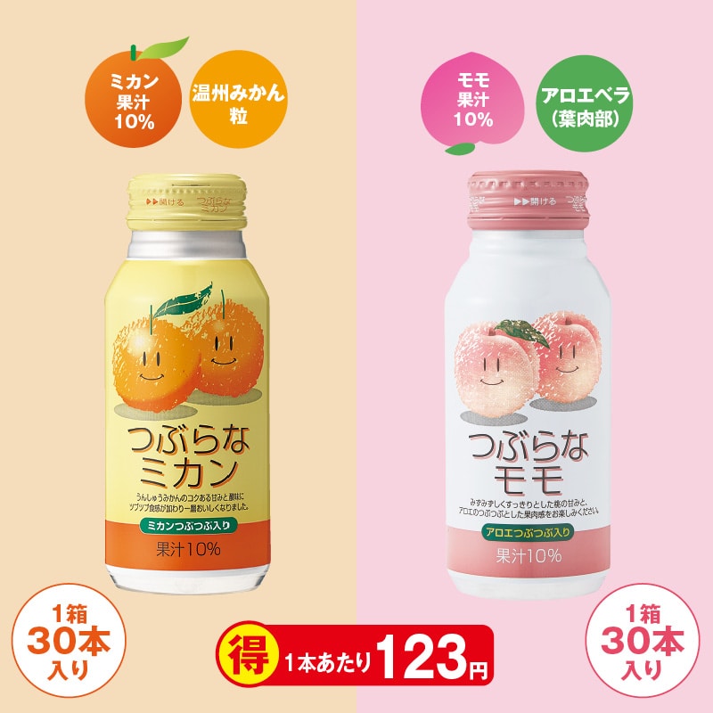 ●商品内容/つぶらなミカン・つぶらなモモ 各190g×30