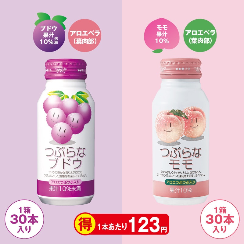 ●商品内容/つぶらなブドウ・つぶらなモモ 各190g×30