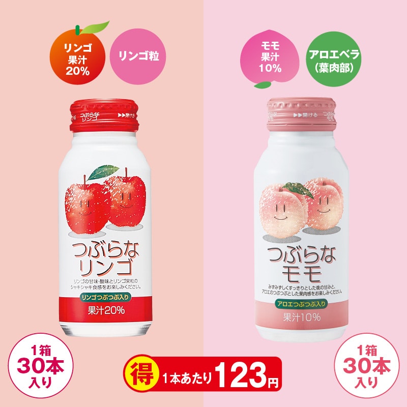 ●商品内容/つぶらなリンゴ・つぶらなモモ 各190g×30