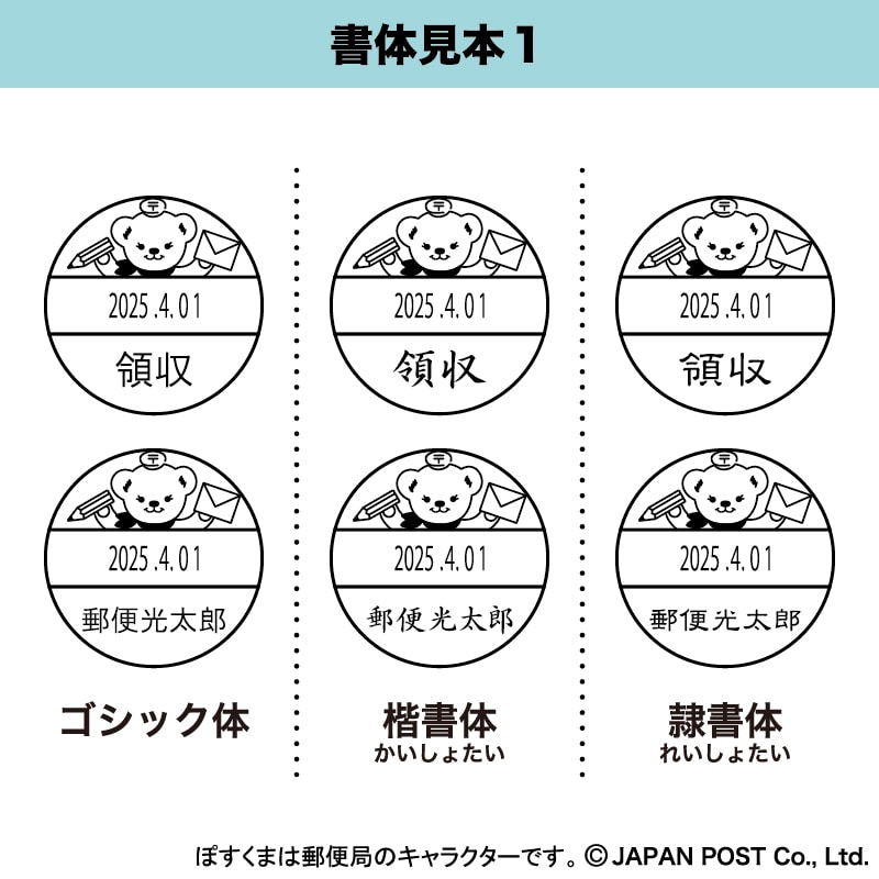 ぽすくまの日付印 デザインB 楷書