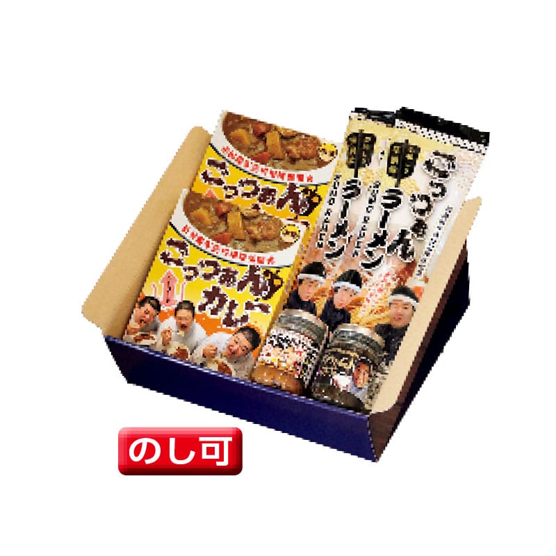 ●商品内容/ごっつぁんカレー180g×2、ごっつぁんラーメン(めん80g・スープ42g 各2)×2、ごっつぁん海苔・ごっつぁん味噌 各100g