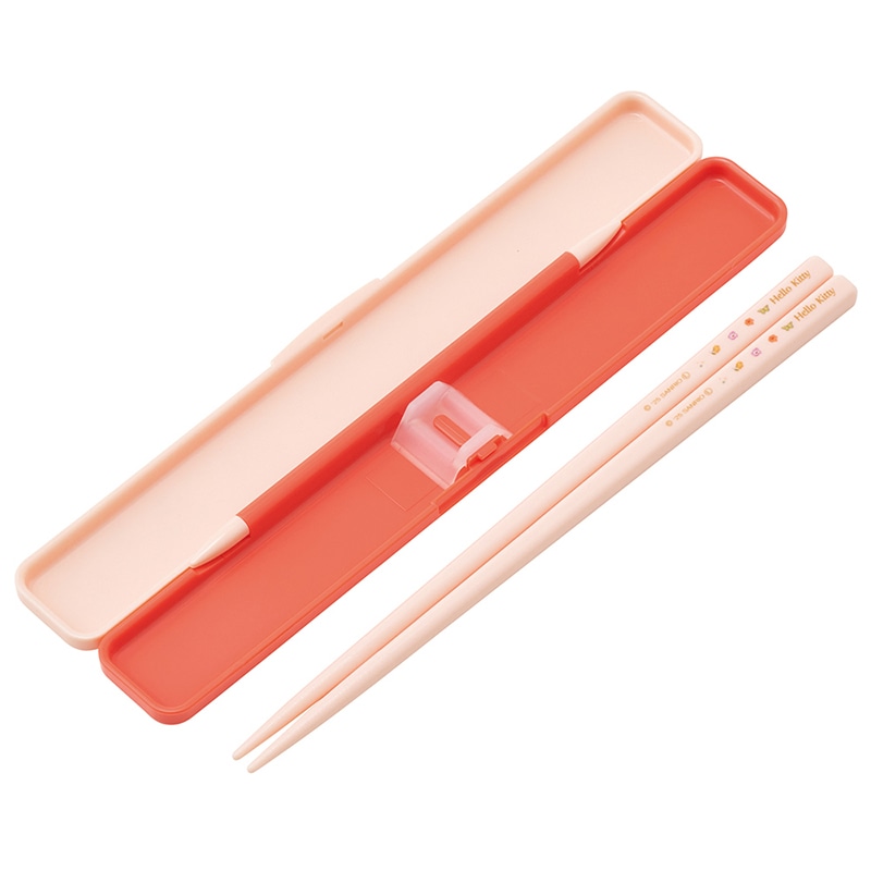 音のならない箸・箸箱セット 箸18cm ハローキティ パステルビビットな水彩花柄 ABC3