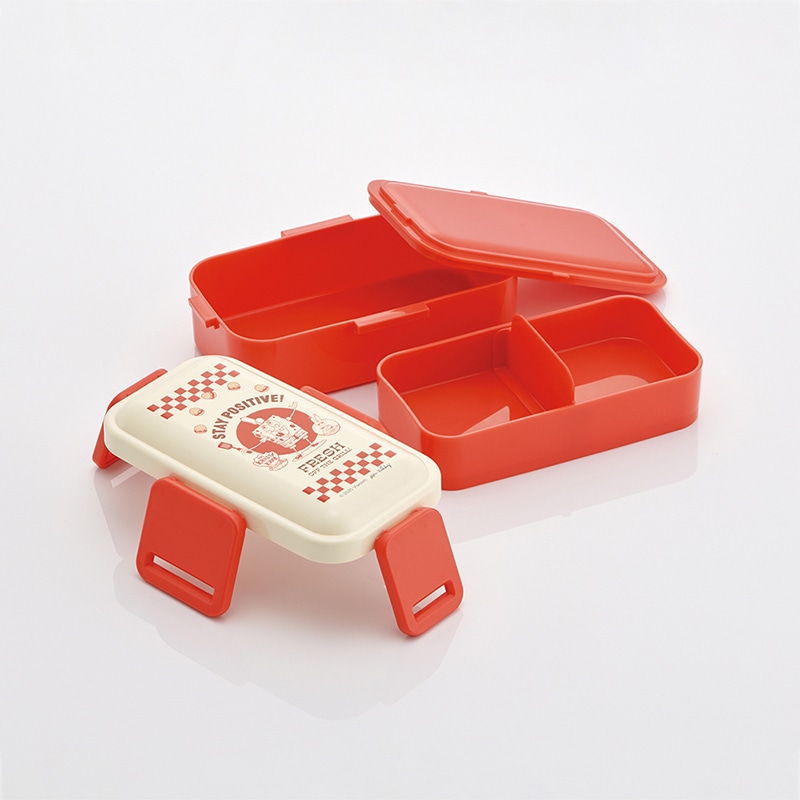 ドーム型のフタと中フタで、ふんわりとご飯やおかずが詰められる2段ランチボックス(弁当箱)。高い仕切り付きで、おかずなどが片寄りにくいのが特徴。中フタにも海苔やふりかけなどがくっつきにくい。片手で持てるスリムタイプ。4点ロックの密封式とパッキンとで汁漏れもしにくい。入れ子式なので、食べた後はコンパクトに収納できて持ち帰りにも便利。フタを外して電子レンジOKで、食洗機もOK。