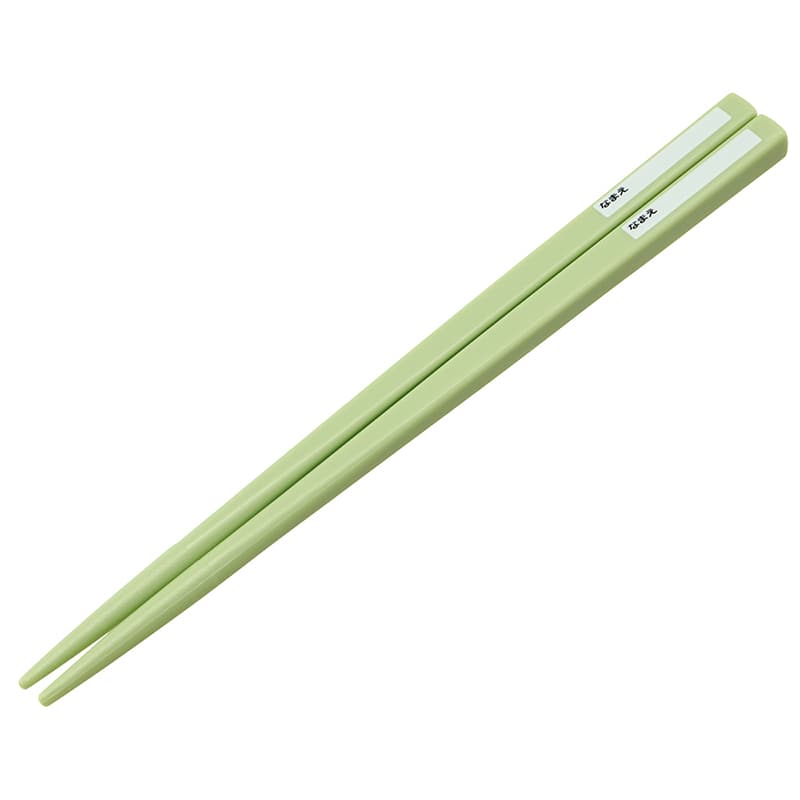 食器洗い乾燥機OKのお箸とケース(箸箱)のセット。ケースは指で引き出すスライド式で、衝撃に強くて壊れにくい丈夫な構造。フタのケース本体からの抜け落ちを防ぐ、外れにくい構造のストッパー付き。フタは力を入れて引っ張ると外れるので、洗いやすく分解可能。お箸には名前を入れられるスペース付き。ケース用の名前シール付き。