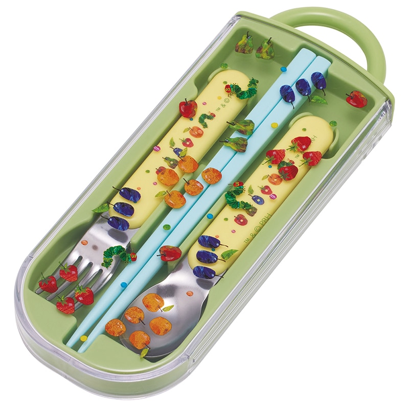 食洗機対応 スライド式トリオセット (名入れスペース付箸) はらぺこあおむし フルーツパターン TACC2
