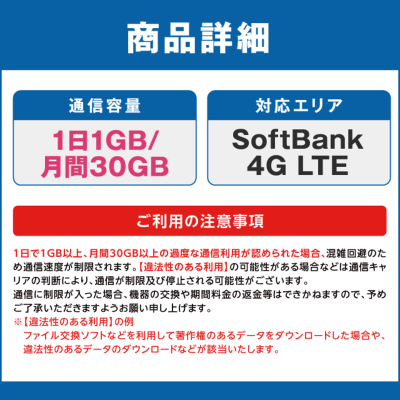 【延長専用】WiFiレンタル 7日プラン Softbank 無制限(1日1GB/月間30GB)