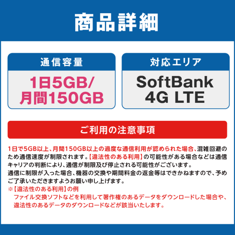 【延長専用】WiFiレンタル 60日プラン Softbank 無制限(1日5GB/月間150GB)