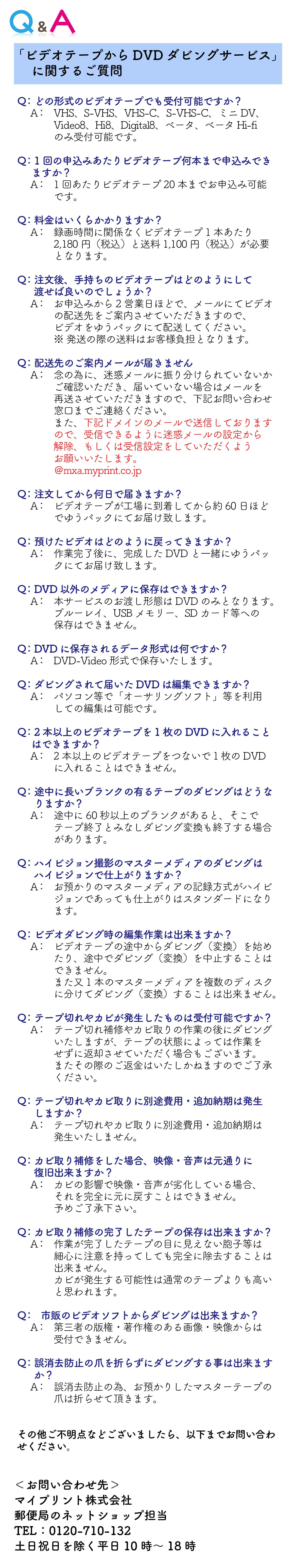 ・お預かりしたビデオテープは仕上りDVDと一緒にお戻し致します。