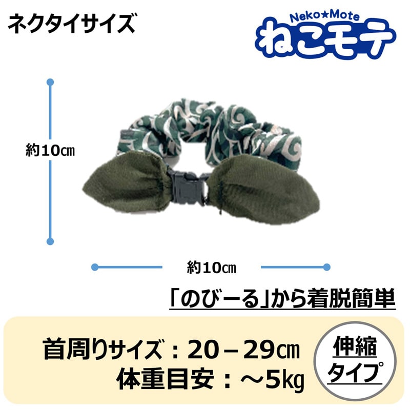 ねこモテ やわらかソフトのびーる機能付 ふわふわ首輪 唐草 緑
