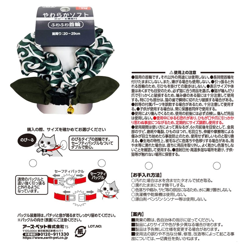 【諸注意】・猫用の首輪です。それ以外の用途には使用しない。