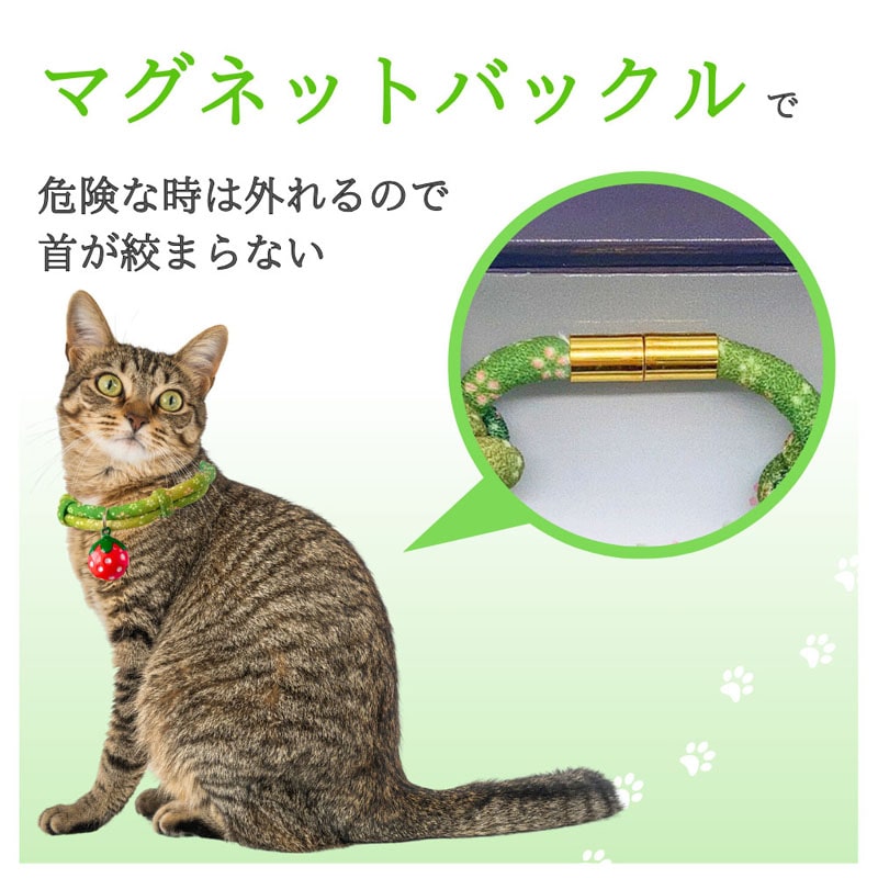 ねこモテ ソフト丸紐マグネットバックル付 アクセサリー首輪 抹茶みるく 緑