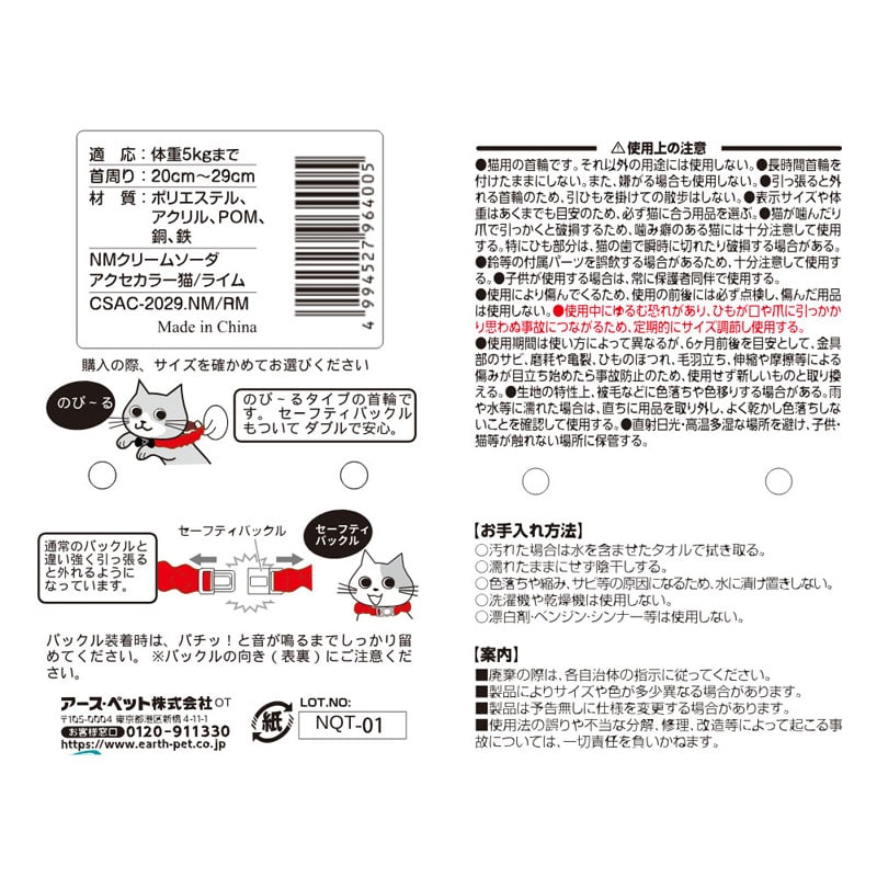 【諸注意】・猫用の首輪です。それ以外の用途には使用しない。