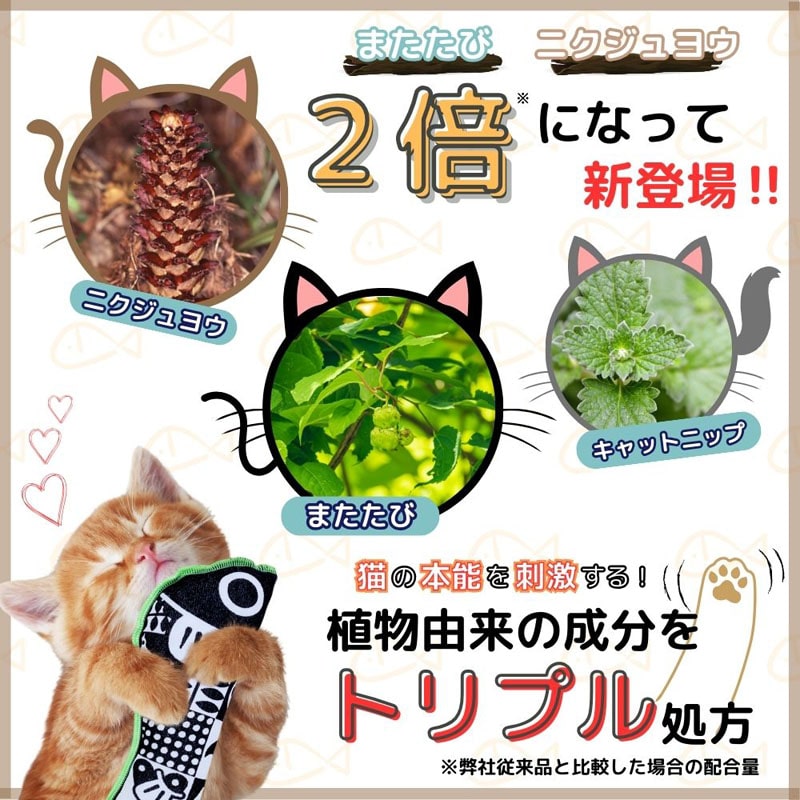 ・またたび、ニクジュヨウ、キャットニップをトリプル配合。