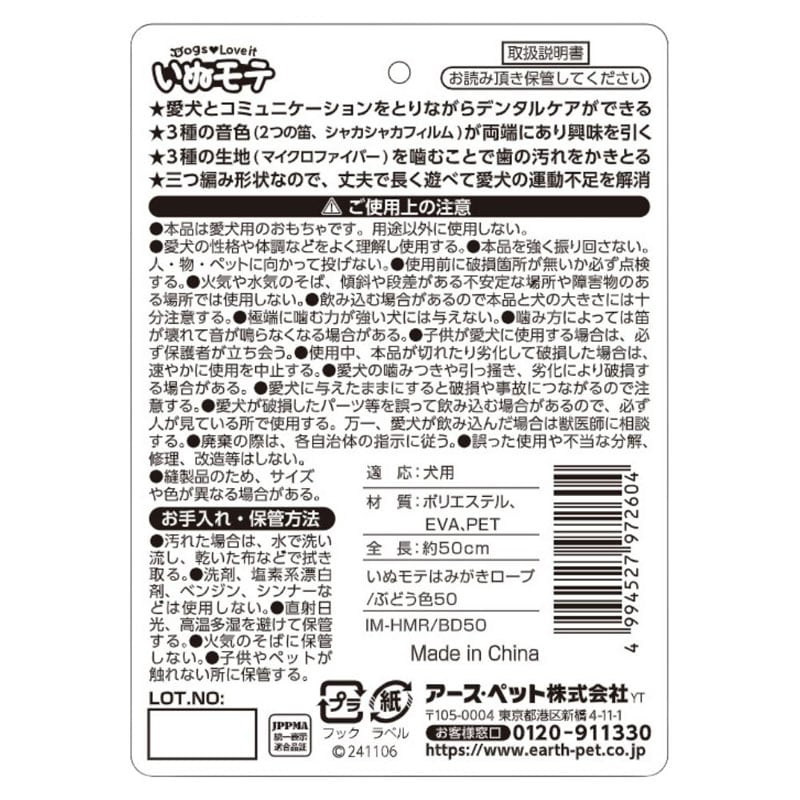 いぬモテ はみがきロープ/ぶどう色50