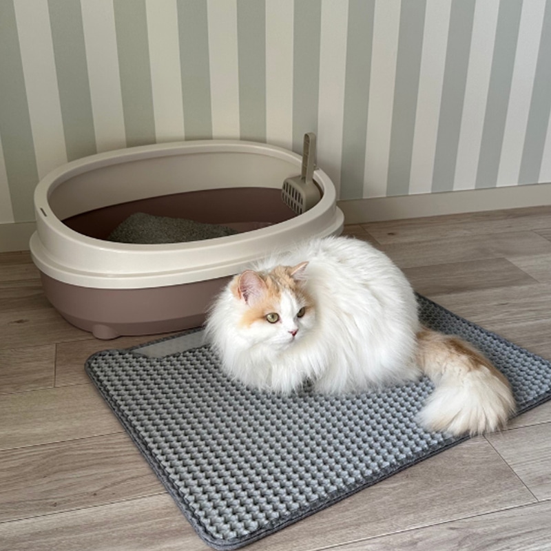 ・ハニカムデザインのマットは、猫砂を集めてトイレに簡単に戻せます。