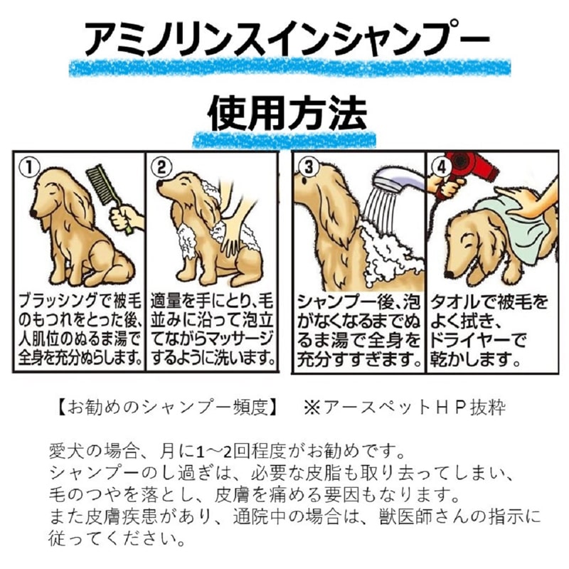 【使用方法】1.シャンプー前によくブラッシングし、被毛のもつれをほぐします。