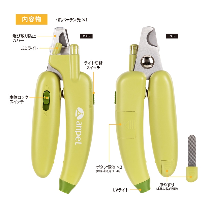 先端部分はLEDライト付きで、爪の血管を確認しながら切ることができ、深爪や出血を防ぎます。