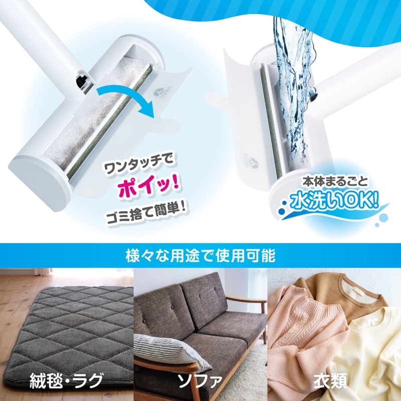手に持って前後に軽く転がすだけで、簡単にペットの毛やほこりを取り除くことができます。