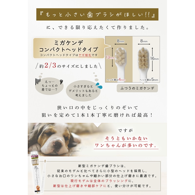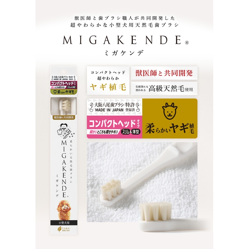 柔らかい天然毛歯ブラシ ミガケンデ コンパクトヘッドタイプ (ヤギ植毛)