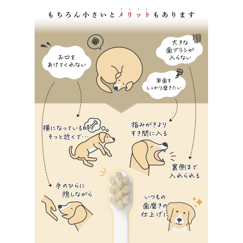 ・スリム&薄型ヘッドを採用し、小さなお口のワンちゃんや細かい部分の仕上げ磨きに最適です。