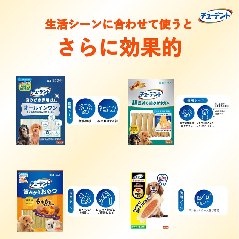 ・さつまいもフレーバー付きだから飽きずに噛めてしっかり歯の汚れを落とす。