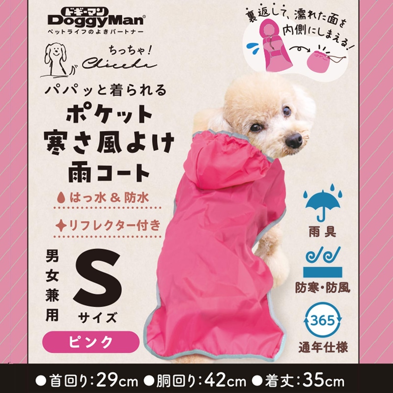 Chiccha! パパッと着られる ポケット寒さ風よけ雨コート S ピンク