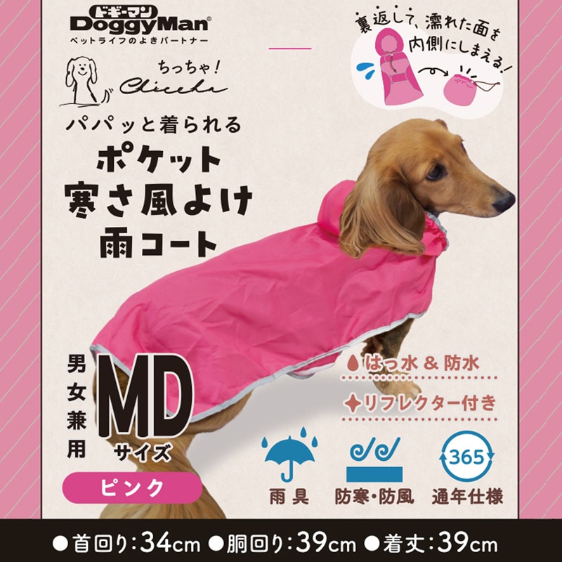 Chiccha! パパッと着られる ポケット寒さ風よけ雨コート MD ピンク