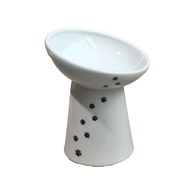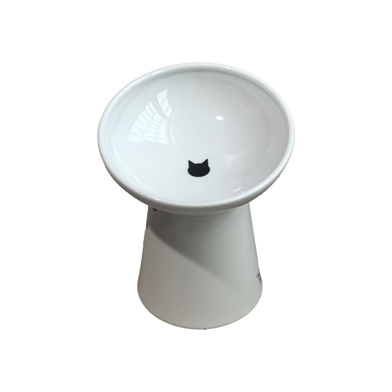 【脚付かつ広めのお皿なので、ヒゲが当たらずに自然な姿勢で食事が出来、吐き戻しの軽減にも配慮】