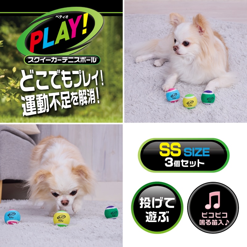 犬用おもちゃ PLAY スクイーカーテニスボール SS 3個セット