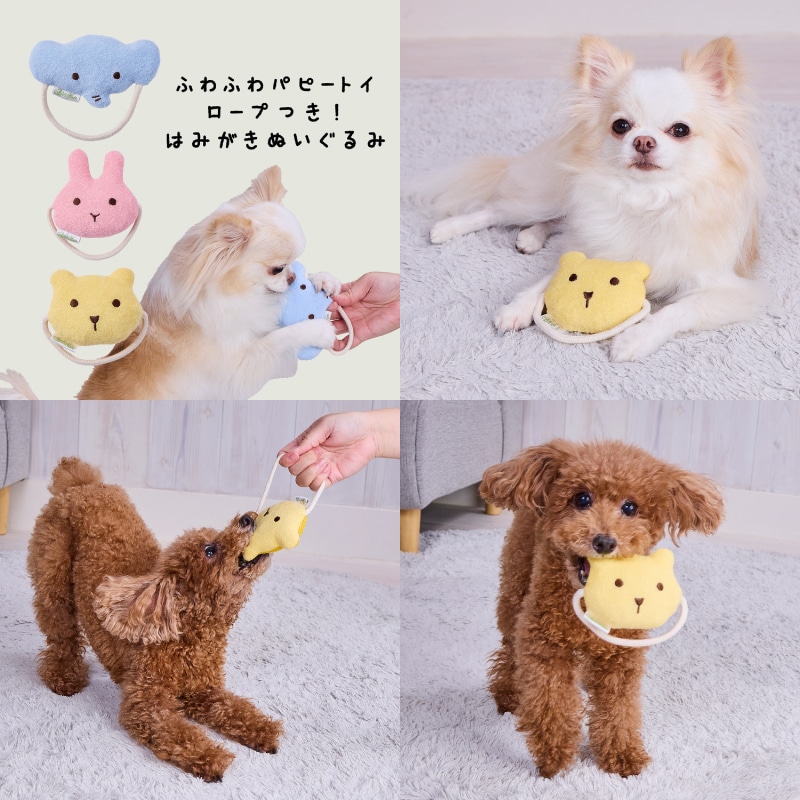 ・パピーでも噛みやすいようにやわらかいパイル生地を使用したぬいぐるみです。