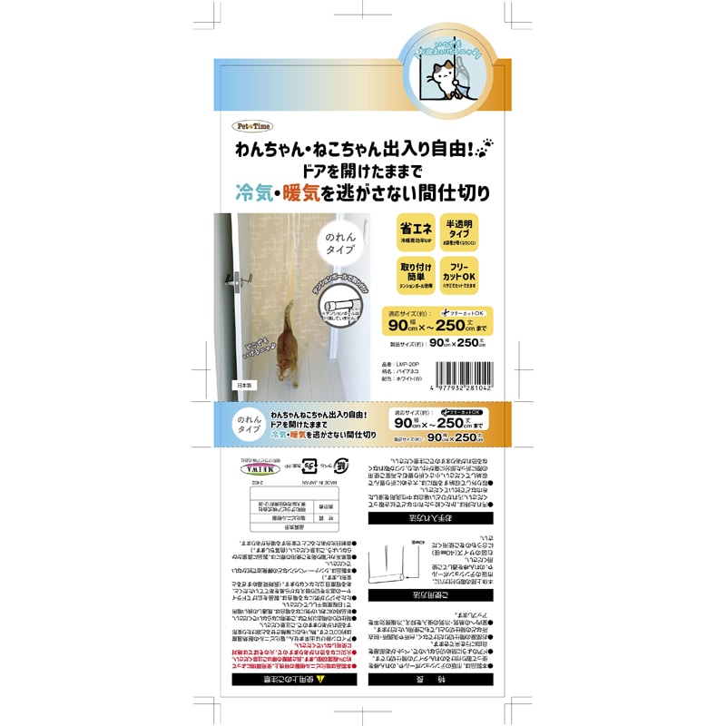 ドアを開けたままで冷気・暖気を逃さない間仕切り パイプネコ 90×250cm