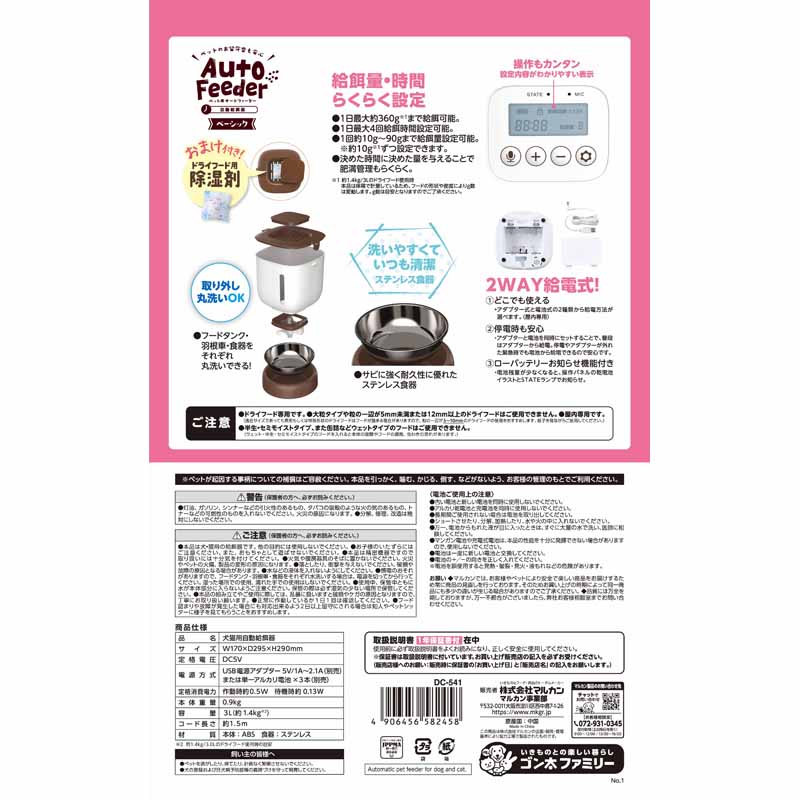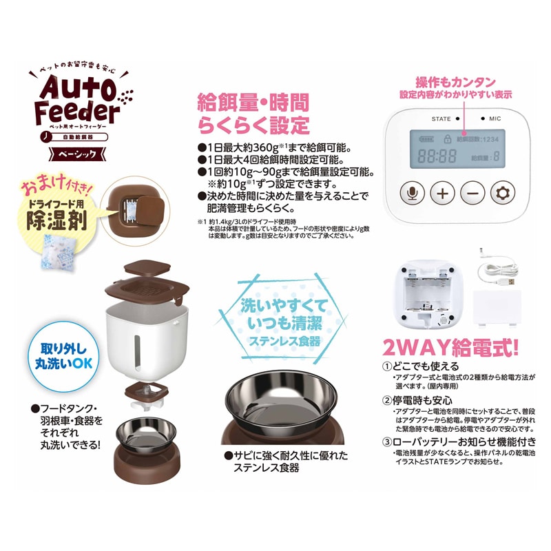 ・給餌量、給餌時間をらくらく設定できる、ドライフード専用自動給餌器です。