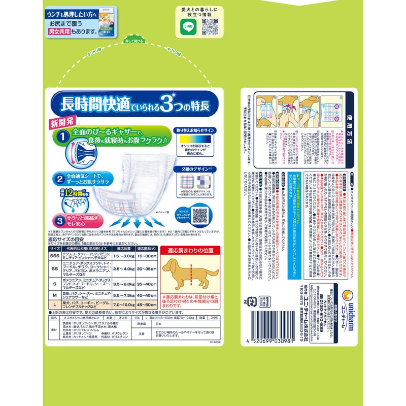 【諸注意】・オス犬用紙オムツです。用途以外に使用しないでください。