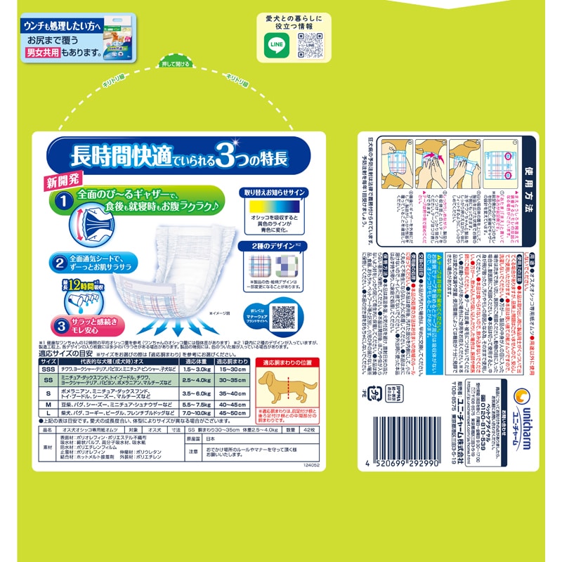 【諸注意】・オス犬用紙オムツです。用途以外に使用しないでください。