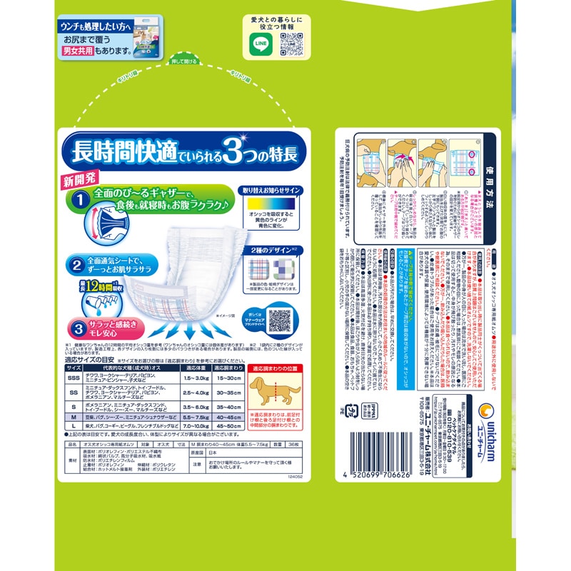 【諸注意】・オス犬用紙オムツです。用途以外に使用しないでください。