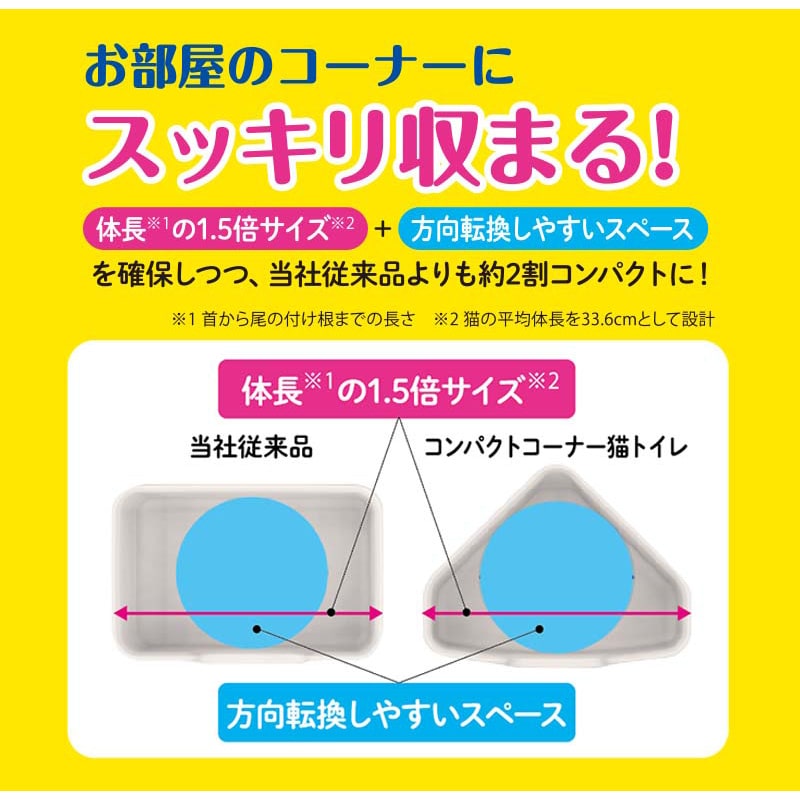 ・コーナーに置けスペースをとらないので、獣医師が推奨するトイレ設置台数「頭数+1台」におすすめ。