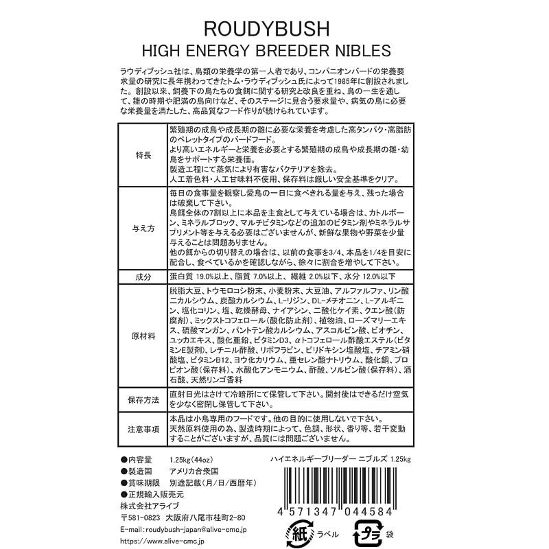 ラウディブッシュ ハイエネルギーブリーダー ニブルズ 1.25kg