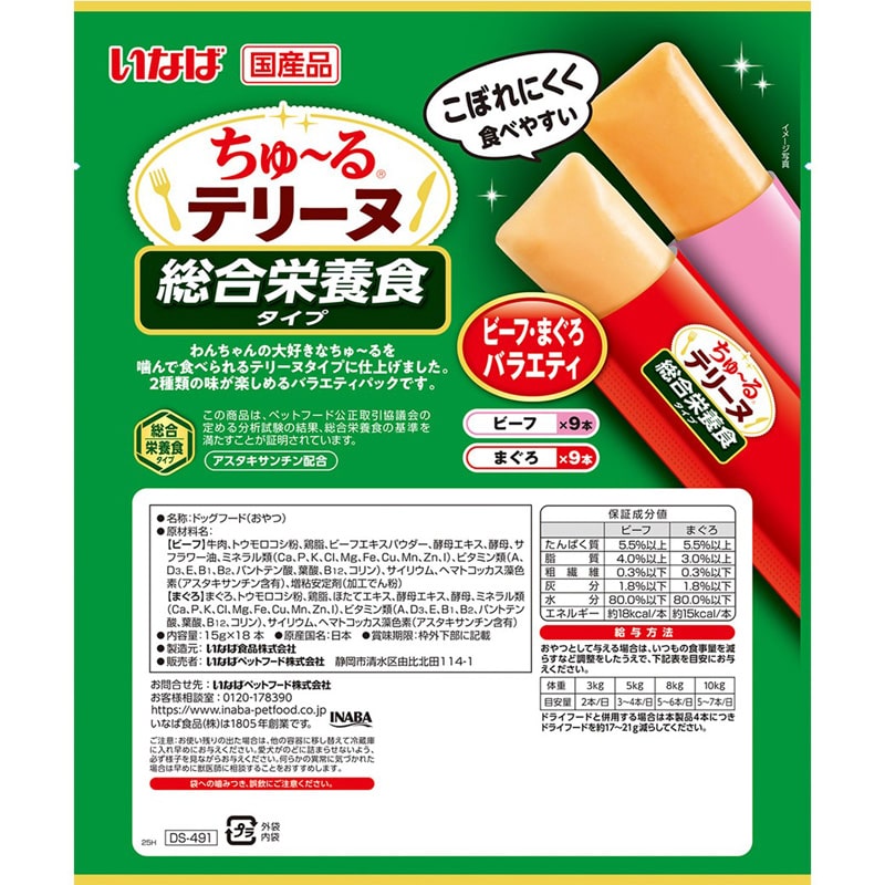 いなば ちゅ〜るテリーヌ 総合栄養食タイプ ビーフ・まぐろバラエティ 15g×18本
