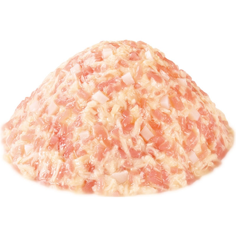 【原材料(成分)】こんにゃく、鶏肉(ささみ)、鶏軟骨、チキンエキスパウダー、寒天、酵母エキス、タンパク加水分解物、増粘安定剤(加工でん粉、増粘多糖類)、ビタミンE、紅麹色素、緑茶エキス