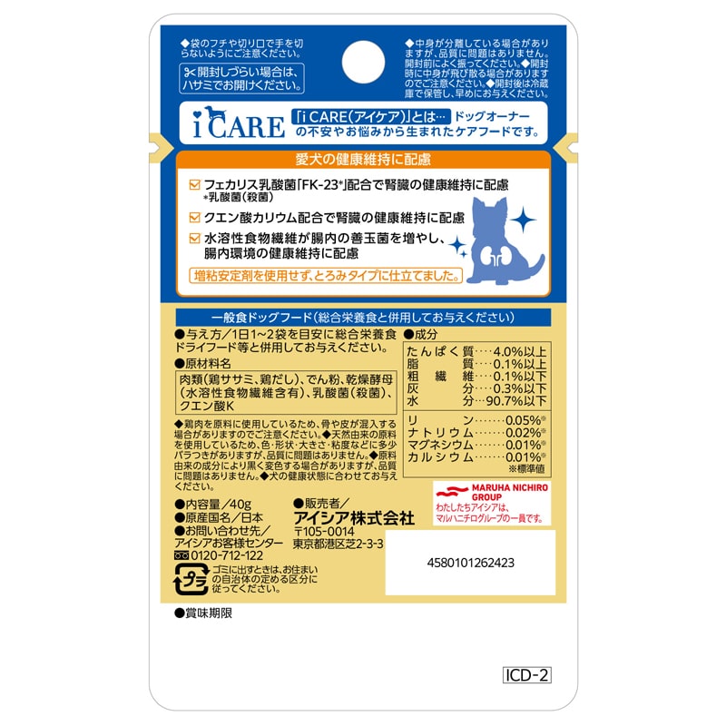 i CARE ドッグ 腎臓ケア ささみ とろみタイプ 40g