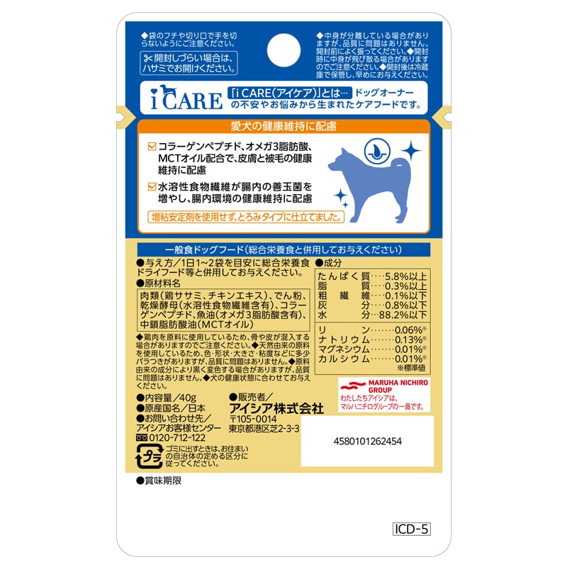 i CARE ドッグ 皮膚・被毛ケア ささみ とろみタイプ 40g