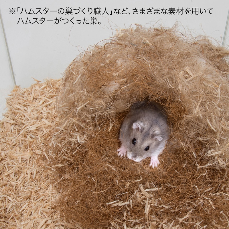・軽くてコシが強い特性は、ハムスターたちにとっても扱いやすい素材で、素早く丈夫な巣をつくることができます。