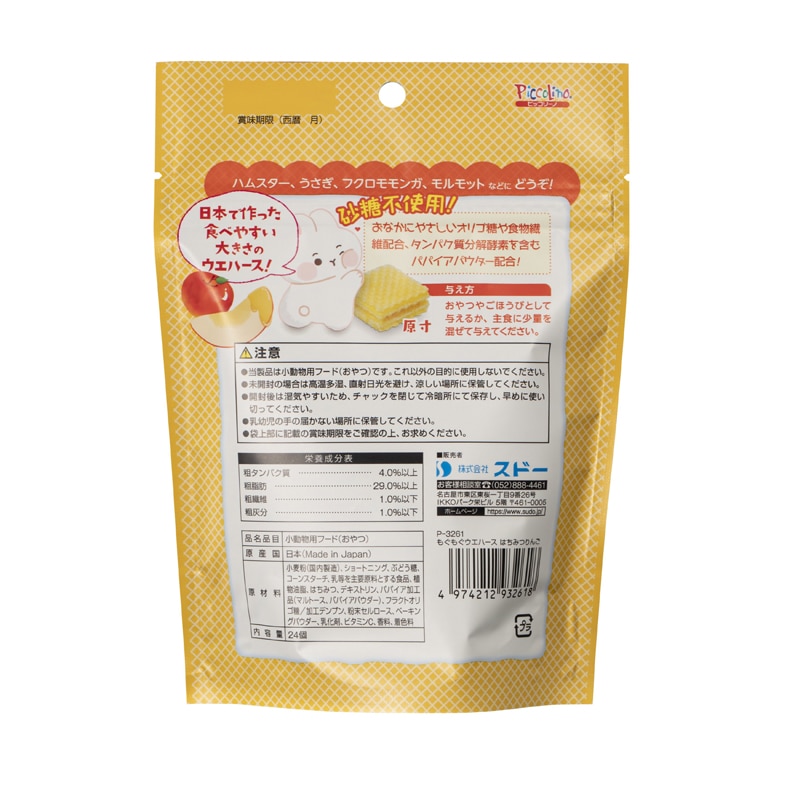 【諸注意】・当製品は小動物用フード(おやつ)です。これ以外の目的に使用しないでください。