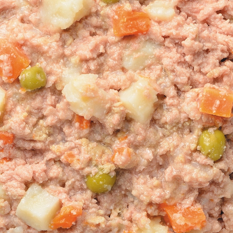 【原材料(成分)】鶏肉、鶏胸肉、野菜類(じゃがいも、人参、グリンピース)、EPA・DHA含有精製魚油、増粘多糖類、ミネラル類、ビタミン類
