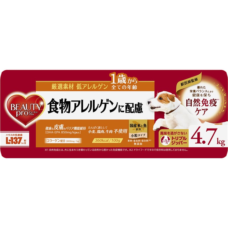 ビューティープロ ドッグ 食物アレルゲンに配慮 1歳から 4.7kg